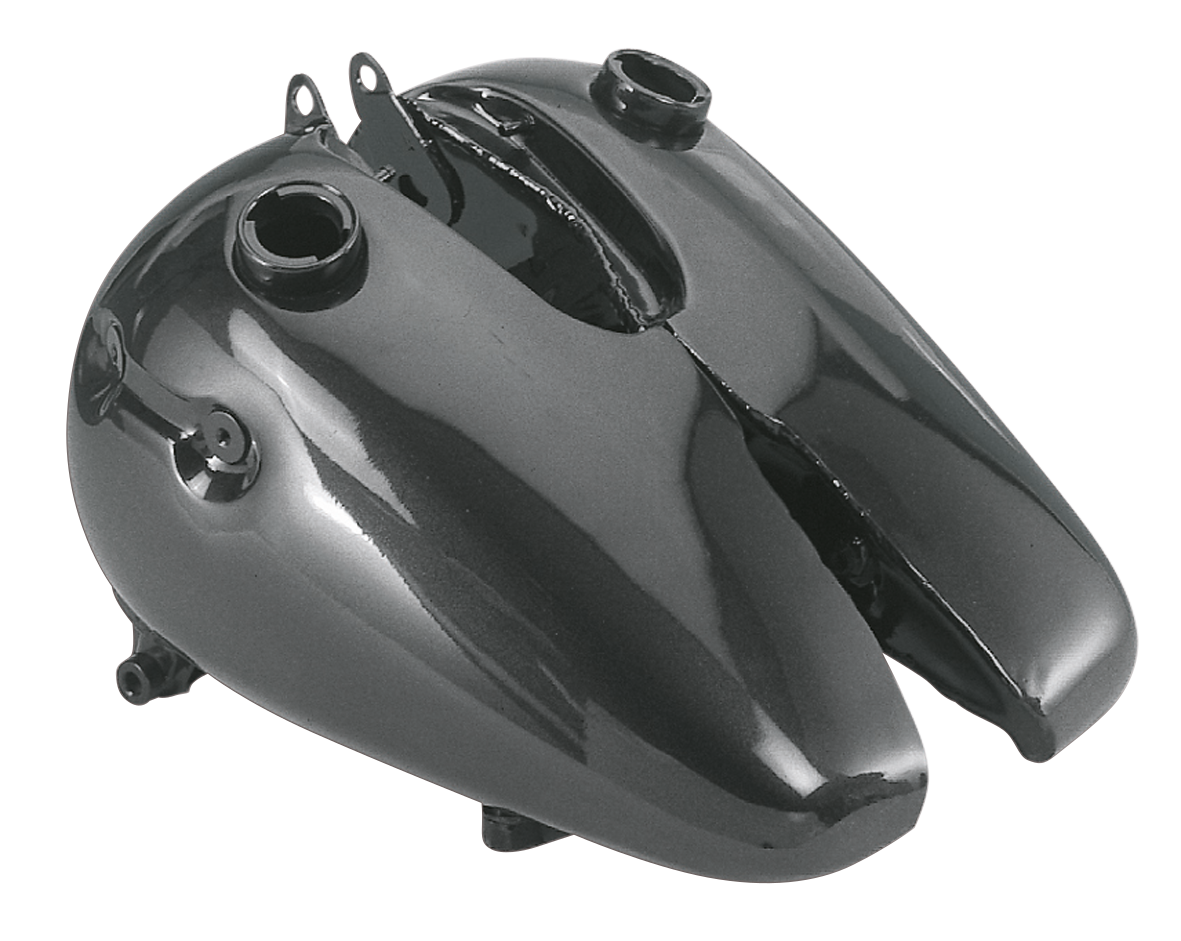 Questo è in effetti un serbatoio di benzina Shovelhead ma completamente modificato per adattarsi ai telai 1947-1965 e al cambio manuale. Presenta una guida del cambio del 1947-1965, tappi del gas 1965-inizio 1973 e i rubunetti benzina 1975 in poi. Il set di serbatoi pesa 6,9 kg.