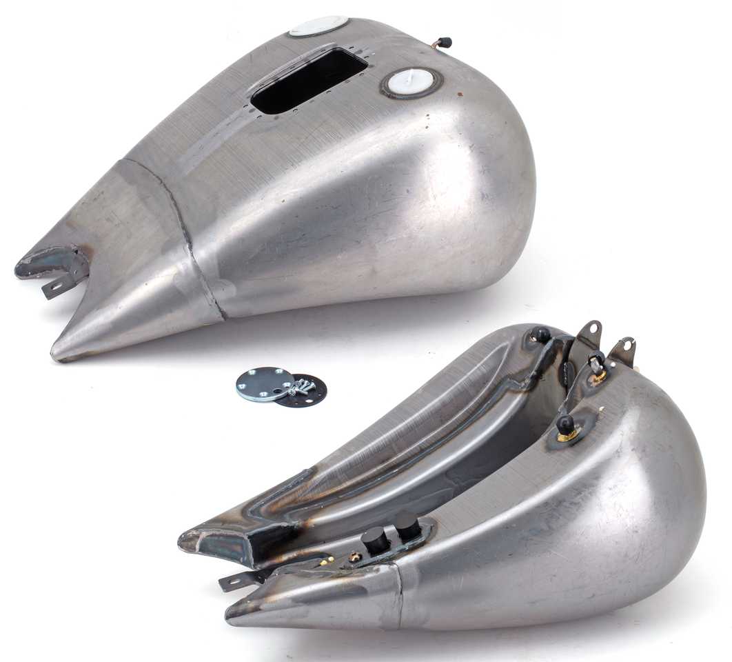 Questi serbatoi allungati in un pezzo unico, hanno gli attacchi per il cruscotto OEM e daranno al tuo Softail quell’aspetto “allungato”. Sono costruiti acciaio e cambiano drasticamente l’aspetto della tua moto. Vanno usati con selle custom. I serbatoi con tappo a vite accettano il tappo sinistro OEM con l’indicatore della benzina, così come tutti i tappi stock e aftermarket sul lato destro. In alternativa questi serbatoi sono disponibili completi di tappi Quick Cam con serratura. La capacità è di circa 5.1 galloni (19,3L.).
