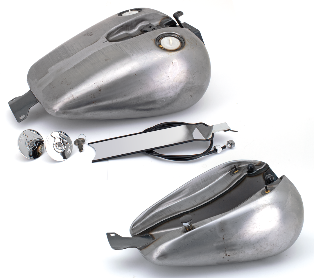 Questo serbatoio ricrea il classico look Fat Bob su FX 1982-1994. Ha l’aspetto dei classici serbatoi Fat Bob doppi ma in realtà è in un solo pezzo. Accetta tappi a vite o i nostri nuovi tappi incassati con serratura “Quick Cam”, rubinetto stile originale e cruscotto con contachilometri largo stile FL-FXWG. Si monta direttamente ai supporti originali. Include il nostro cavo tachimetro ZPN114246 (per rinvio sulla ruota anteriore, con dado strumento da 5/8″ o 16mm), ed un inserto cromato per serbatoio. Contiene 3.5 galloni, 13,2L.