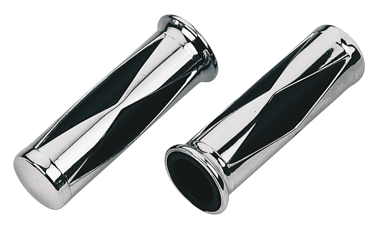 In aggiunta alla nostra linea di pedane Diamante, ti offriamo anche questo set di manopole dallo stesso disegno, per il tocco finale. Presenta della gomma in un pezzo solo all’interno per assorbire le vibrazioni, ed un rivestimento splendidamente cromato.