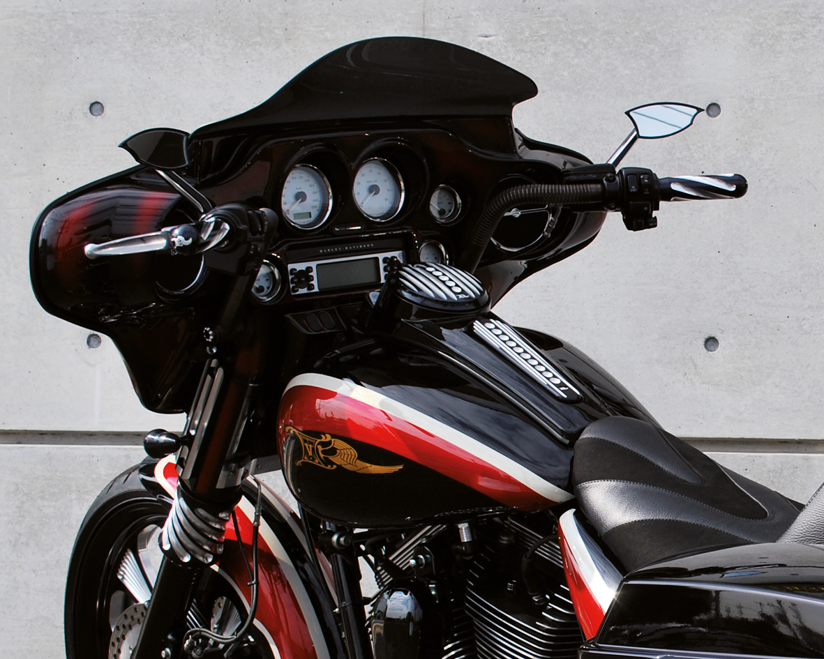 I set manopole Ken’s Factory Neo Fusion in alluminio billet lavorato CNC da Ken’s Factory hanno il diametro più grosso rispetto alle altre in circolazione. Tutte le versioni hanno dei tappi terminali in ottone. Le manopole a cavo sono adatte a tutti Sportster XL e XR, FX, FXR, V-Rod, Dyna, Softail e Touring 1976-2022 con cavo dell’acceleratore singolo o con doppio cavo acceleratore/ritorno, ad eccezione dei modelli con serbatoio dell’aria al manubrio. Le manopole stile Throttle-by-Wire sono adatte Dyna 2016-2017, Softail 2011 a oggi, Trike 2009 a oggi, Touring 96, 103, 107 e 114CI 2008 a oggi e Touring 117CI 2018-2023.