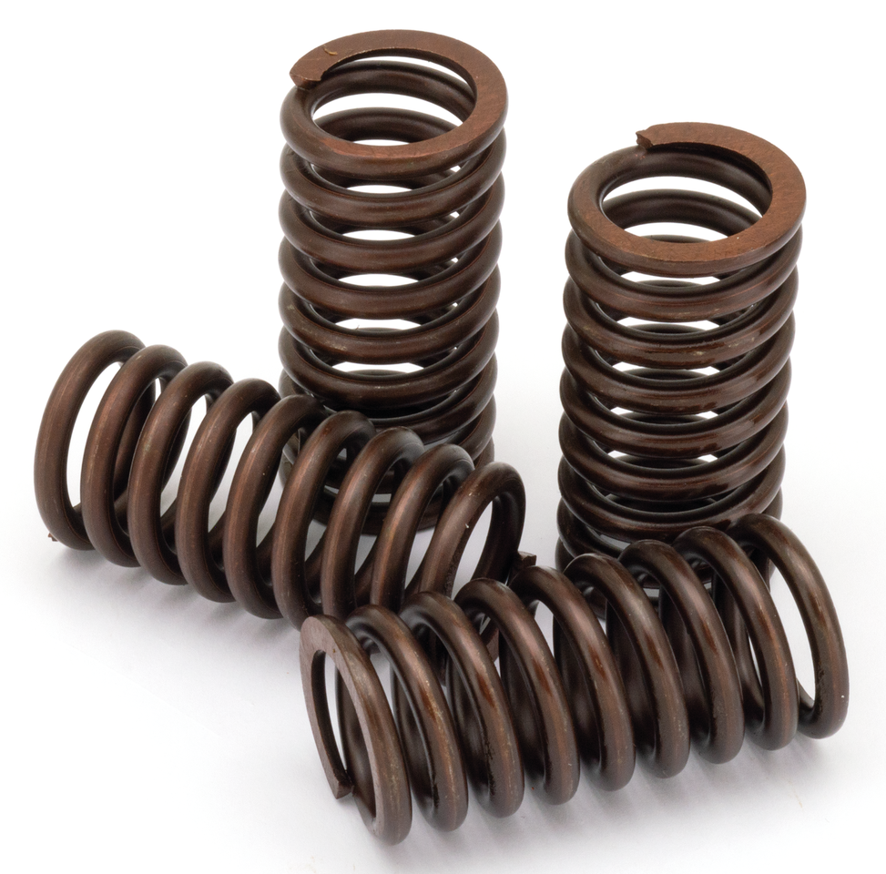 Le molle sono realizzate in acciaio di prima qualità e sorpassano le specifiche OEM. I set per modelli a valvole laterali hanno 4 molle, quelli per altri modelli hanno 4 molle interne e 4 esterne.