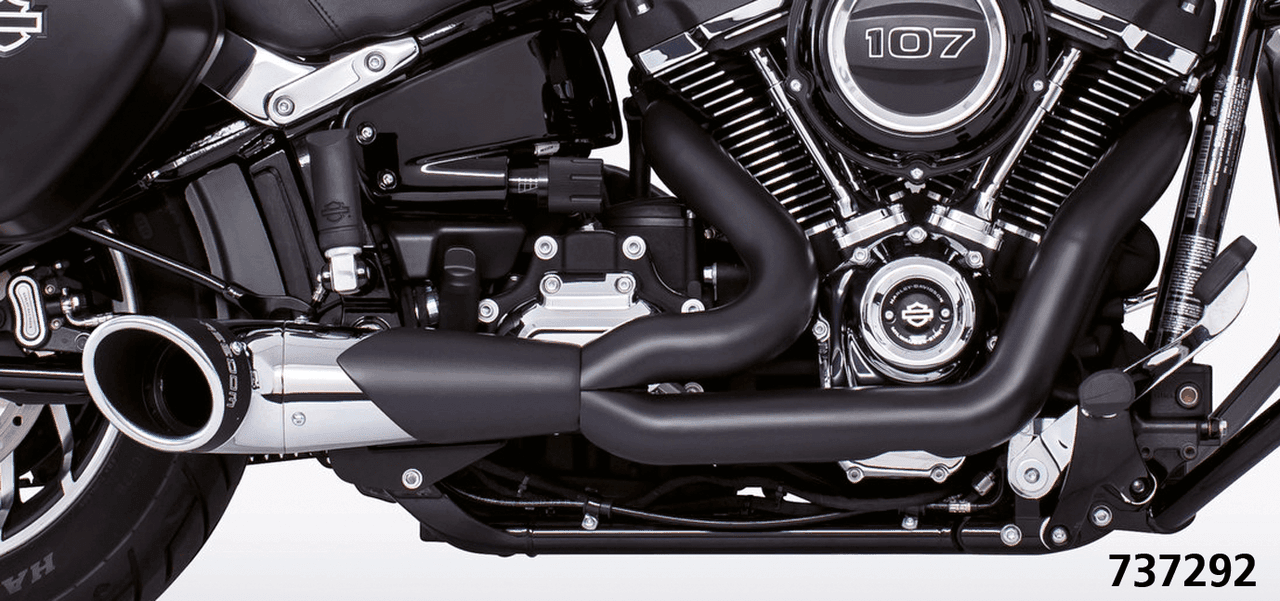 Per Softail 2018 a oggiRichiede adattatori quando installato su FLHC & FLHCS Heritage, FLI Hydra-Glide Revival, FLSB Sport Glide et FXLRST Low Rider ST con supporti borsePer il montaggio su FLFB e FLFBS Fat Boy, FXBR e FXBRS Breakout o FXDR(S), il kit di riposizionamento pedane passeggero deve essere ordinato separatamente Nota: Tutti i modelli Europei 2021 e successivi (Euro 5) richiedono l’eleiminatore per la sonda O2 posteriore ZPN 744444 e il tuning digitale con Diag4Bike o similari per disabilitare CEL (Check Engine Light) e DTC (Digital Trouble Code), Sistema nero con terminale cromato e tappo finale Turn-out nero