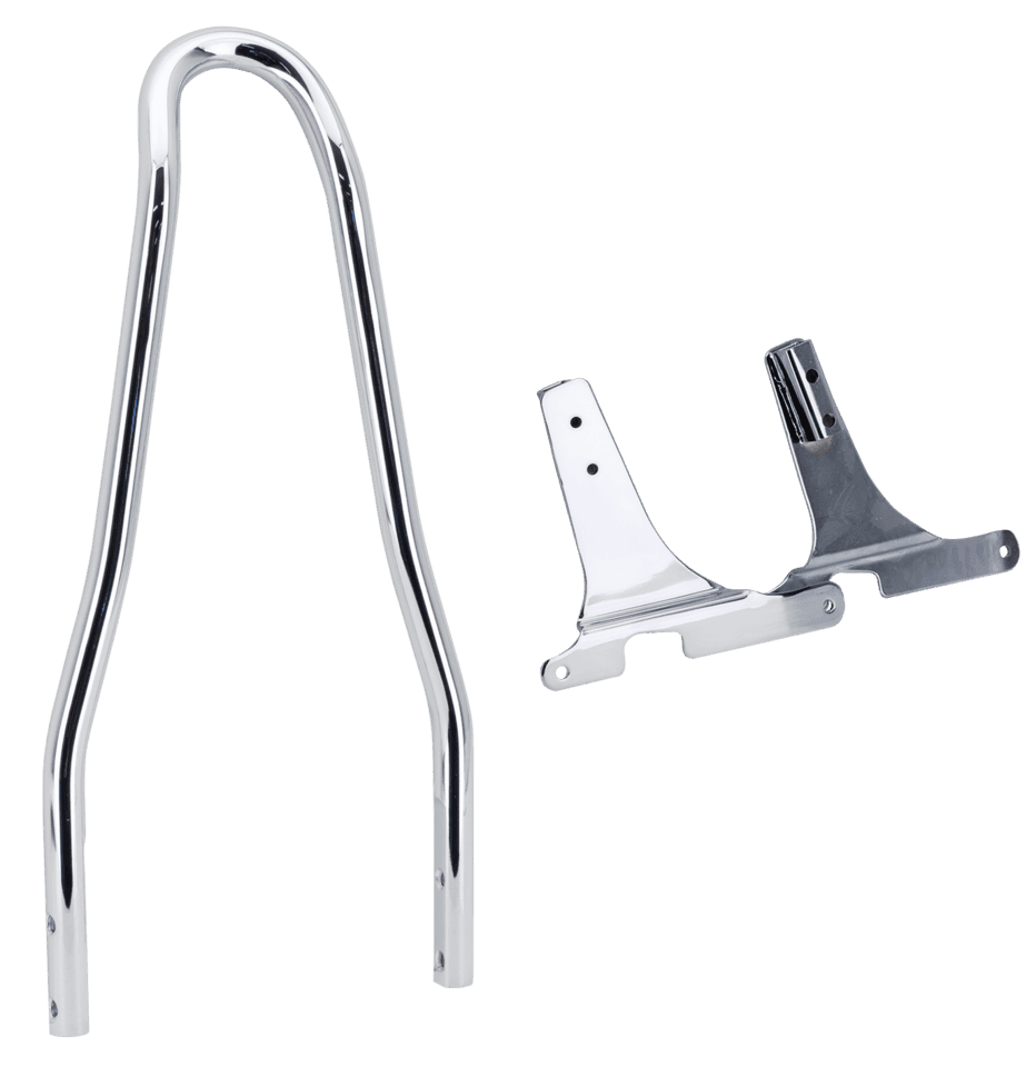 Sissy bar cromato, alto 13″ (33mm), utilizzabile per varie applicazioni. Per il montaggio staccabile è necessario ordinare separatamente un set di piastre laterali e un kit di aggancio. Le piastre laterali si adattano anche ad altri modelli, ma NON in combinazione con questo sissy bar.