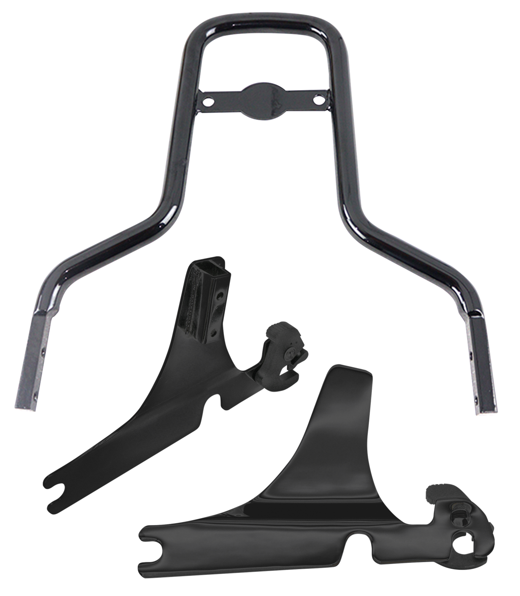 Il sissy bar circolare con supporto a 2 bulloni è alto 28cm e si avvita alle piastre laterali a sgancio rapido. Il sissy bar, le piastre laterali e il kit hardware di aggancio devono essere ordinati separatamente.