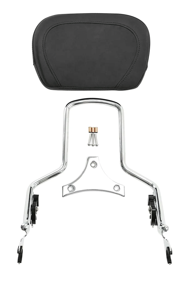 Per chi desidera cambiare gli accessori in modo semplice e veloce, abbiamo un montante sissy bar per il passeggero con il cuscinetto posteriore abbinato in un comodo kit. Il kit ha un’altezza totale di 47cm, il cuscino è largo 32cm e alto 23cm. Non adatto al Tour-Pak montato in modo rigido.