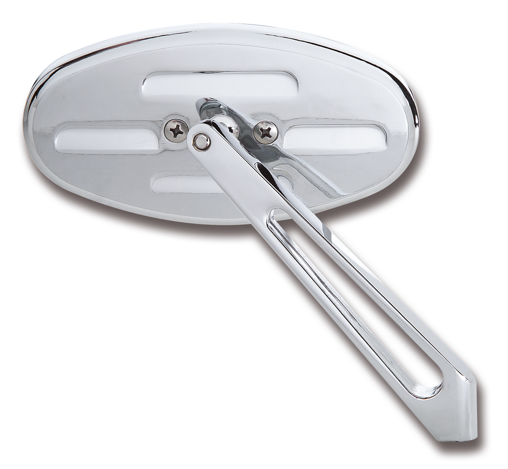 In fusione con finitura cromata. Tutti gli stili hanno lo specchio convesso. Gli specchietti sono forniti con minuteria di montaggio per Harley e per cruiser metriche.