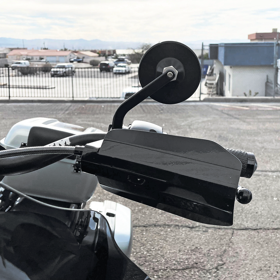 Specchietti solidi, semplici e regolabili che funzionano che si installano direttamente sulle Harley-Davidson. Le teste degli specchietti possono essere bloccate in posizione o regolabili e ruotano su un giunto sferico in acciaio inossidabile esente da corrosione che garantisce un’azione super fluida e una lunga durata. Lavorati a controllo numerico in alluminio billet 6061 con finitura anodizzata nera o cromata. Gli steli sono filettati 5/16″-24 UNF, i corti sono lunghi come gli specchietti Harley di serie, i lunghi superano di 3″ (7,5cm) la lunghezza di serie. L’installazione su Indian e sulla maggior parte delle altre moto metriche richiede l’acquisto separato di un adattatore per specchietti.