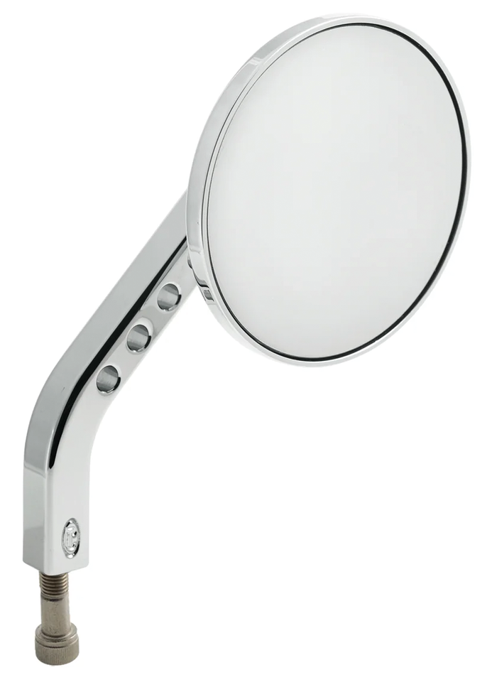 Specchietti solidi, semplici e regolabili che funzionano che si installano direttamente sulle Harley-Davidson. Le teste degli specchietti possono essere bloccate in posizione o regolabili e ruotano su un giunto sferico in acciaio inossidabile esente da corrosione che garantisce un’azione super fluida e una lunga durata. Lavorati a controllo numerico in alluminio billet 6061 con finitura anodizzata nera o cromata. Gli steli sono filettati 5/16″-24 UNF, i corti sono lunghi come gli specchietti Harley di serie, i lunghi superano di 3″ (7,5cm) la lunghezza di serie. L’installazione su Indian e sulla maggior parte delle altre moto metriche richiede l’acquisto separato di un adattatore per specchietti.