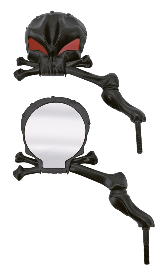 Questi specchietti Skull Mania sono venduti in set destro e sinistro e hanno uno snodo sul braccetto per posizionarne la testa.