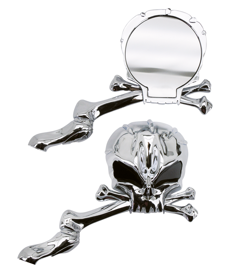 Questi specchietti Skull Mania sono venduti in set destro e sinistro e hanno uno snodo sul braccetto per posizionarne la testa.