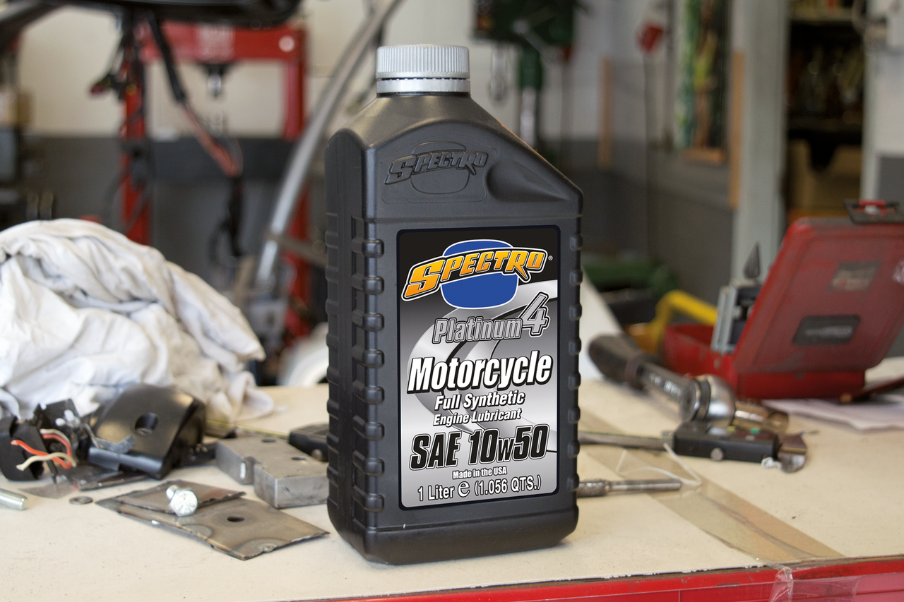Lo Spectro Platinum è un olio completamene sintetico per motociclette. Deriva dagli oli a base sintetica PAO con la nuova tecnologia Spectro Spectra-Syn e le ultime A.P.I. SH/CF-4 CG-4 ed è fortificato con degli additivi anti-schiumogeni e anti-usura che forniscono cambiate migliori e più morbide nei motori che condividono il lubrificante con quello del cambio. Da quando l’olio Platinum Spectro Full Synthetic usa l’indice “No Viscosity Index improvers”, non c’è collasso della viscosità nelle scatole cambio. Golden Spectro Full Synthetic è la scelta ideale per tutte le moto a quattro tempi dove un olio completamente sintetico è richiesto per uso turistico, per competizioni o per fuori strada. Osserva le raccomandazioni dei costruttori per quanto riguarda viscosità e intervalli di sostituzione. Raccomandato per l’uso in qualsiasi condizione sia richiesto un olio A.P.I., SF, SG, SH. Venduto in confezioni da 12 bottiglie da litro o in bottiglie single da 1 Litro.