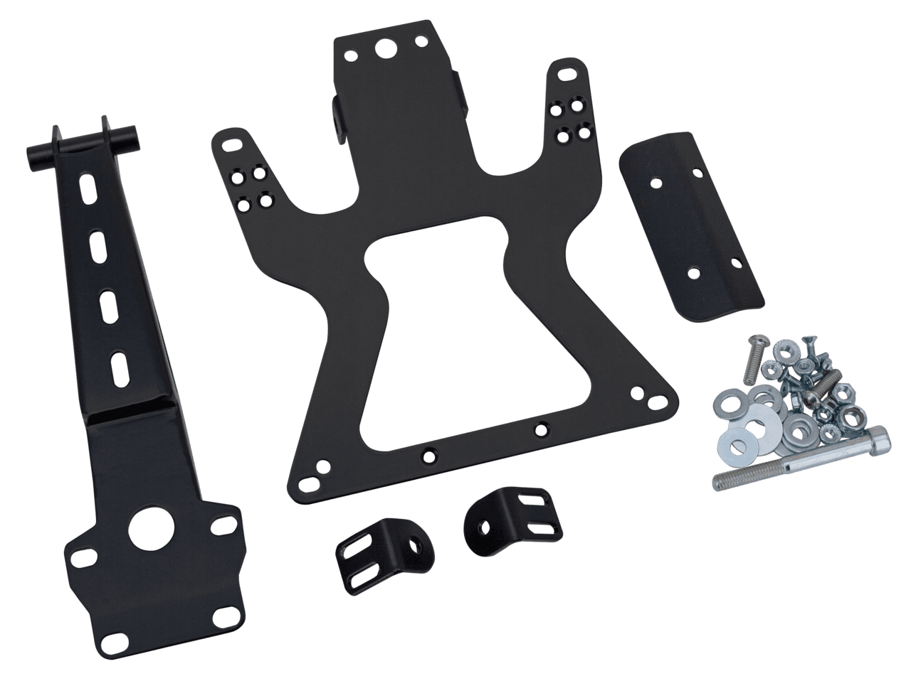 Staffa con portatarga di semplice installazione per l’uso con luci multifunzione 3-in1 1 luci posteriori/freno/frecce e luce targa. Luci non incluse.