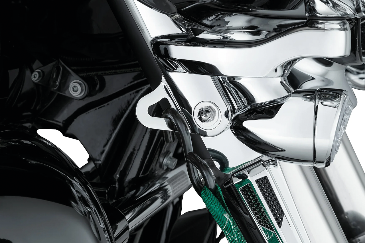 Le staffe di fissaggio offrono una posizione sicura e comoda per collegare le cinghie di fissaggio alla moto durante il servizio o il trasporto su rimorchio.