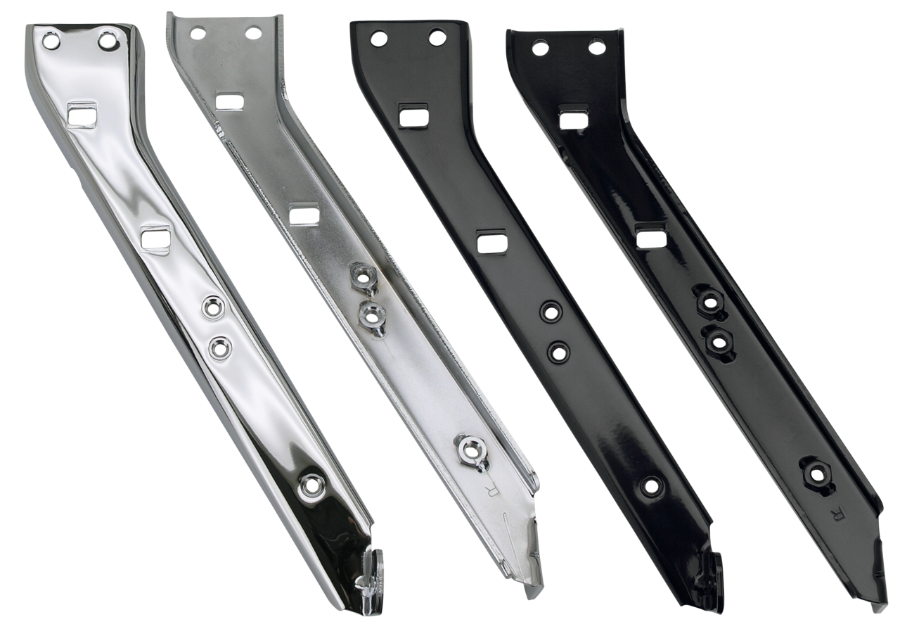 Questi supporti borse rinforzati sono il 15% più spessi di quelli originali. Si installano con la bulloneria originale e sono venduti in coppia a scelta con finitura nera o cromata. Per tutti i Touring dal 1985 al 2008, sostituisce OEM 90718-79C (sinistro) e 90120-79C (destro).