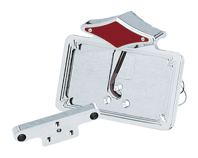 Fanale posteriore e supporto targa di grande design, sia la versione a montaggio laterale che quella a montaggio centrale sono lavorate in alluminio billet e successivamente cromate. Entrambe i portatarga accettano targhe US misura 10″x 7″ (102mm x 178mm). La luce a LED usa minor voltaggio e dura più lungo del normale bulbo. Il fanale a LED in dotazione in questo kit è pre cablato e fornito di luce targa. La staffa a montaggio laterale è disponibile per targa verticale od orizzontale e si monta sul perno ruota. Le staffe per montaggio targa verticale sono disponibili con telaio piatto od arcuato. La versione per montaggio sul parafango è disponibile con cuscinetto di montaggio in gomma o per montaggio rigido con blocchetto.