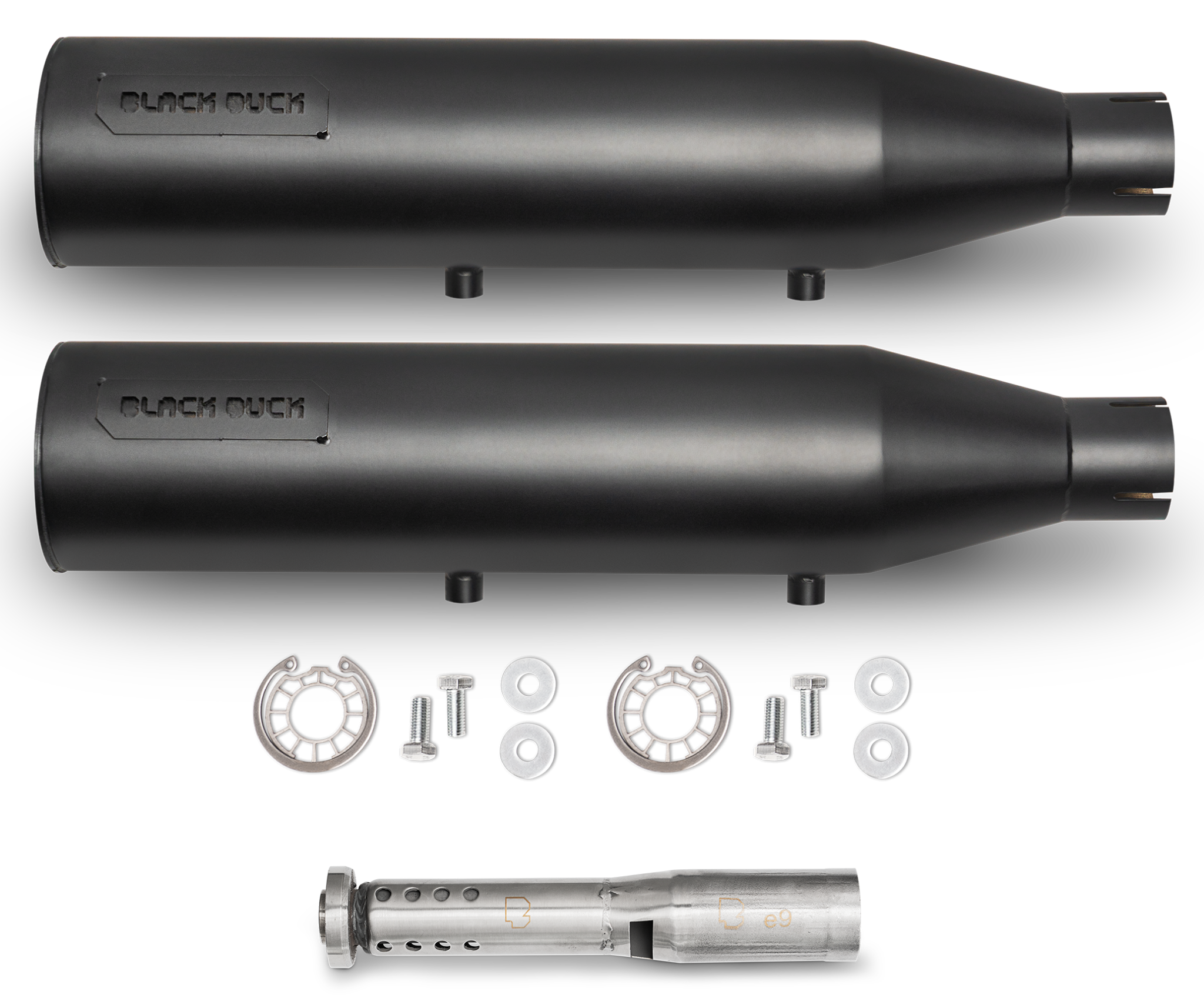 I silenziatori sBlack Duck in acciaio inox sono progettati a Barcellona e realizzati in Spagna utilizzando materiali all’avanguardia e tecniche avanzate collaudate in gara per massimizzare la potenza e l’efficienza del motore. Questi silenziatori da 4″ (10cm) di diametro si inseriscono direttamente sui collettori di serie e lasciano le pedane del passeggero nella posizione originale. I silenziatori sono dotati di dB-killer fissi. Per l’uso in pista, questi componenti possono comunque essere rimossi, ma ciò richiede modifiche permanenti all’impianto di scarico. Questo garantisce un suono profondo e gutturale, ma invalida l’omologazione E.