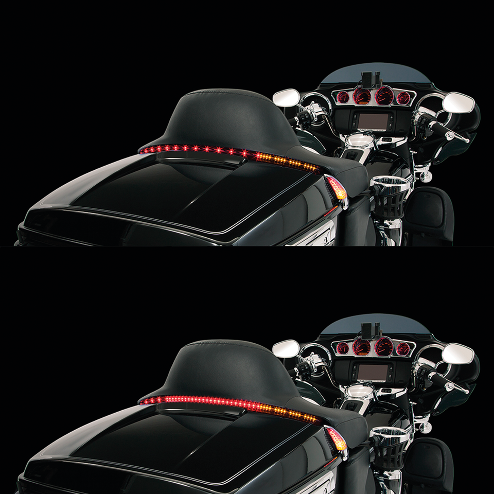I Tour Blade Ciro sono il modo più pulito per aggiungere più luci al retro della vostra moto. La striscia di luci a basso profilo si monta tra il vostro poggiaschiena e il TourPak per fondersi direttamente dentro la motocicletta, mentre nello stesso tempo aggiunge una luminosa sequenza di frecce, luci di posizione e la luce di stop. L’installazione è molto semplice e non richiede tagli, fori o giunte di fili. Se avete già altri accessori Ciro con un controller potete anche ordinarli senza. Per tutti Touring dal 2014 a oggi.