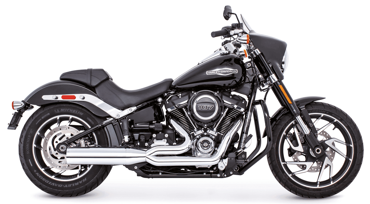 Softail 2018 a oggiVersione raceRichiede adattatori quando installato su FLHC & FLHCS Heritage, FLI Hydra-Glide Revival, FLSB Sport Glide et FXLRST Low Rider ST con supporti borsePer il montaggio su FLFB e FLFBS Fat Boy, FXBR e FXBRS Breakout o FXDR(S), il kit di riposizionamento pedane passeggero deve essere ordinato separatamente, Tutto cromato con tappi finali diritti