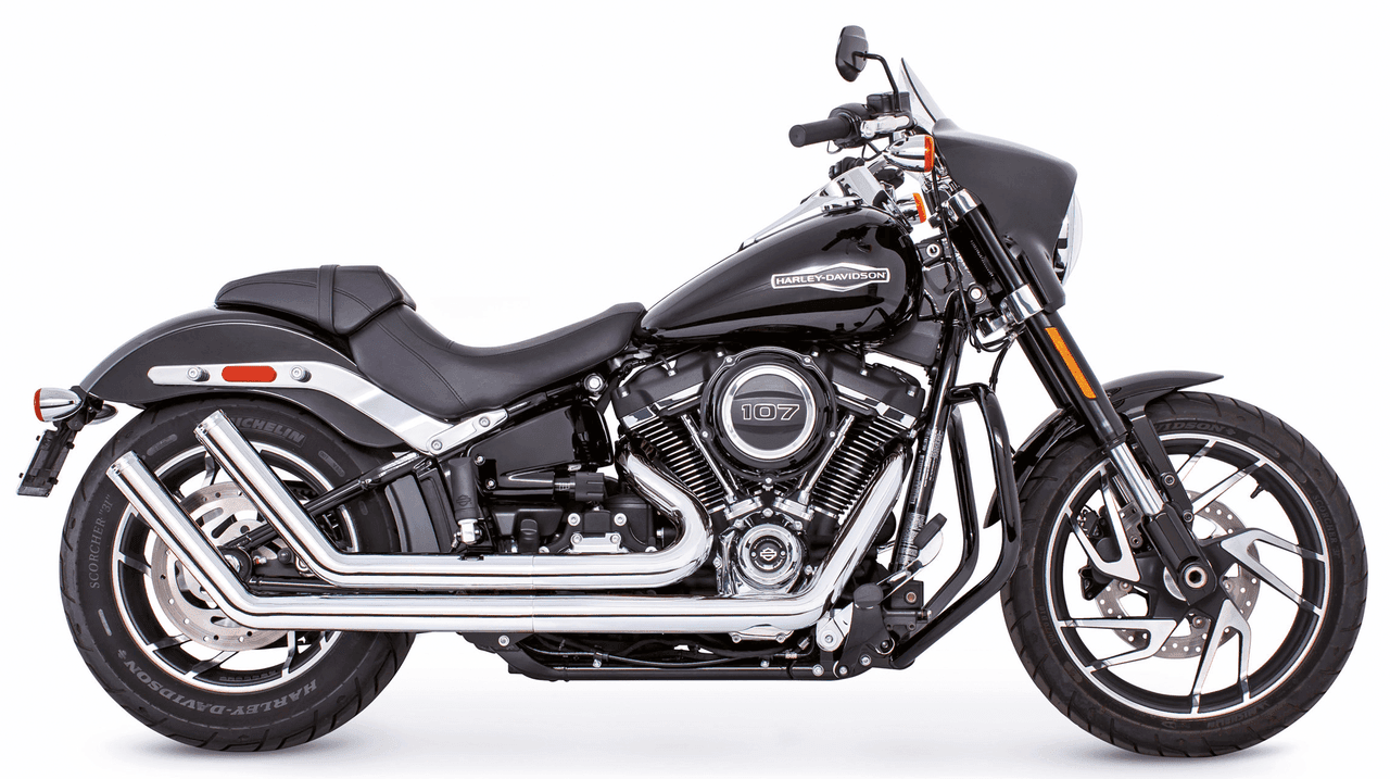 Softail dal 2018 a oggiVersione raceRichiede adattatori quando installato su FLHC & FLHCS Heritage, FLI Hydra-Glide Revival, FLSB Sport Glide et FXLRST Low Rider ST con supporti borse, Cromato con tappi finali Star cromati
