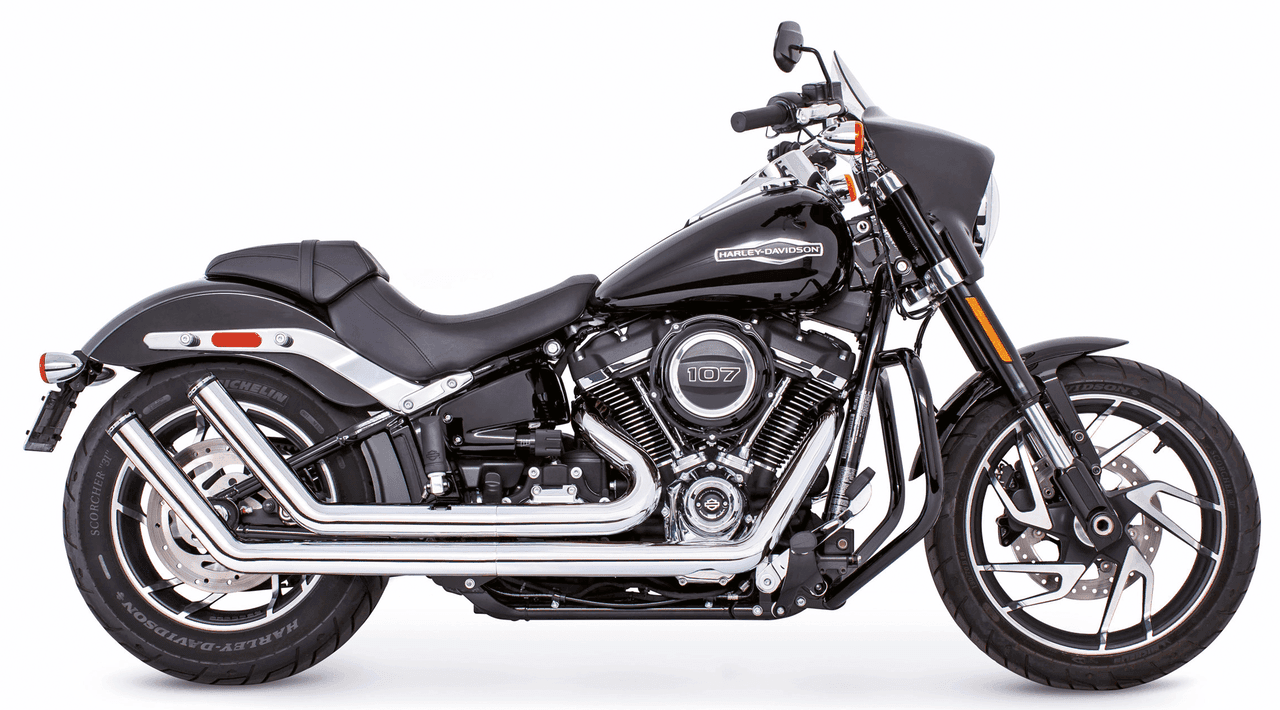 Softail dal 2018 a oggiVersione raceRichiede adattatori quando installato su FLHC & FLHCS Heritage, FLI Hydra-Glide Revival, FLSB Sport Glide et FXLRST Low Rider ST con supporti borse, Cromato con tappi finial Star scolpiti neri